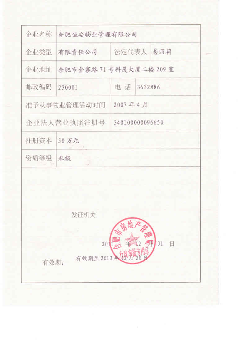 安徽恒安保安服務(wù)有限公司,經(jīng)安徽省公安廳,合肥市工商局批準(zhǔn)成立的,公司注冊(cè)資金100萬,法人代表 : 鄒濤 它是 安徽省僅有的幾家具備保安服務(wù)許可證的民營(yíng)保安公司之一 。 它是在原合肥恒安物業(yè)有限公司的基礎(chǔ)上發(fā)展而來的, 原恒安物業(yè)管理有……